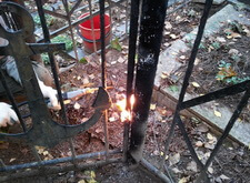 На могиле в первую очередь мы занялись оградой. Обожгли старую краску. В этот раз обжиг занял больше времени. Пришлось жечь ее в два захода.