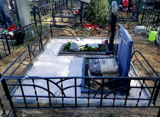 Клиент обратился к нам с просьбой уложить территорию могилы бетонной плиткой, а также оградить периметр места захоронения небольшим бордюром. Осмотрев участок, мы сразу же принялись за работу. На фотографиях ниже запечатлён внешний вид могилы на момент нашего первого приезда.